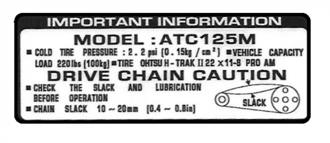 Important Info decal for the '84 and '85 ATC 125M.