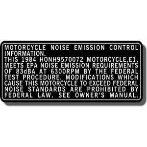 Noise Emission Control decal for the 1985 ATC 250R and for the 1985 ATC 250SX.