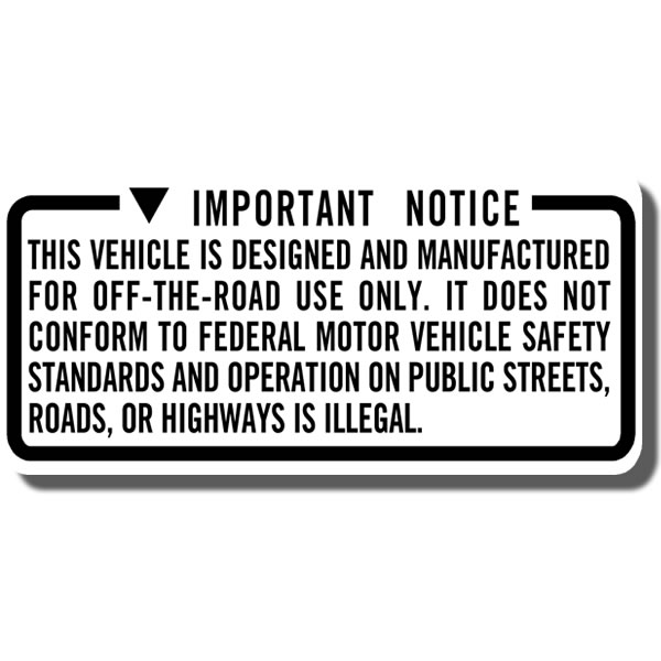 Important Notice Decal. Came standard on the ATC70 '83-'85, ATC110 '82-'84, ATC125M '84, ATC200 '82-'83, ATC200E '82-'83, ATC200ES '84, ATC200S '84, ATC200X '83-'84, ATC250R '82-'84.